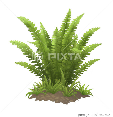 lush green fern plant with vibrant fronds and small grass at base, set against transparent background, showcasing its natural beauty