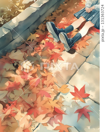 秋季水彩畫,描繪了地上堆積的秋葉。秋葉,落葉,季節,自然,治愈,情感