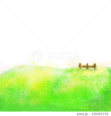 Grassland, blue sky and wooden fence cartoon textured background