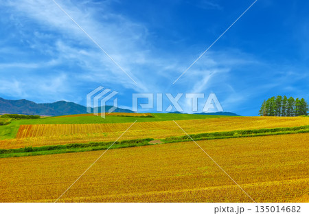 美瑛的山丘和秋收時的天空