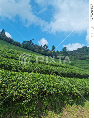 This is a green tea field landscape in Boseong, Jeollanam-do, Korea.