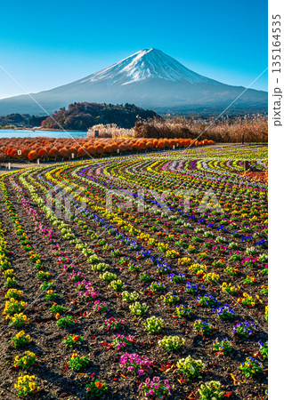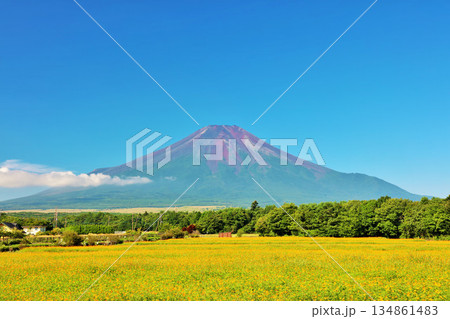 山梨縣、山中湖花卉公園、紅蕎麥田(高菖蒲)和富士山