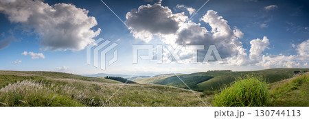 南阿蘇村風景:從阿蘇房之鄉久木野眺望阿蘇山脈和藜草的壯麗景色