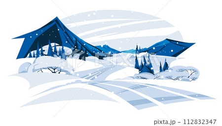 winter mountain road. The landscape of the valley of snow. Christmas cold season. Vector flat illustration