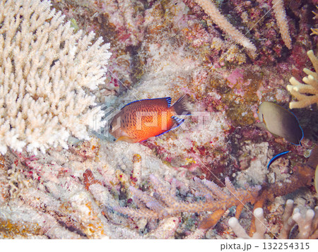 美麗的餐桌珊瑚、可愛的貢貝魚幼魚(貢貝科)等等。靜岡縣伊豆半島加茂郡南伊豆町中木埼浜