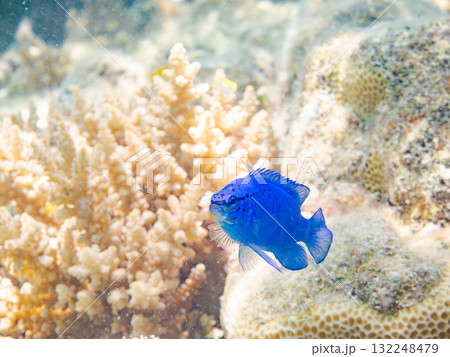 藍點雀鯛、藍點雀鯛等魚群。美麗的珊瑚礁和熱帶魚群。阿室島和座間味島