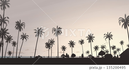 Silhouetted coconut palm trees at the beach with vanilla sky rectangle background vector illustration. Summer traveling and party at the beach concept flat design with blank space.