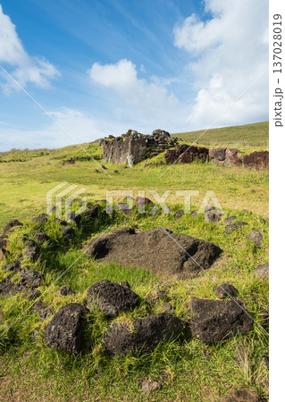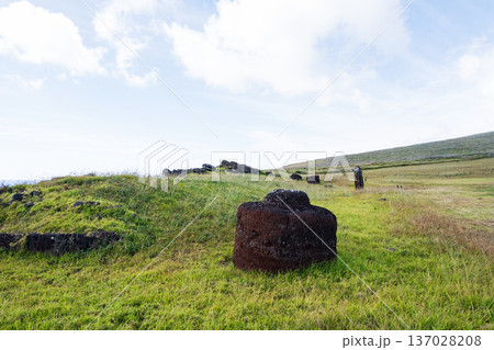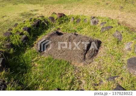 復活節島阿胡維納普2號遺址倒塌的摩艾石像