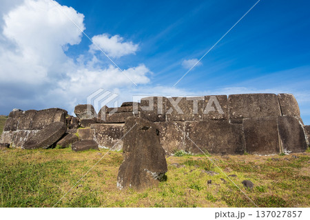 復活節島阿胡維納普(Ahu Vinapu),女性摩艾石像及遺址2號