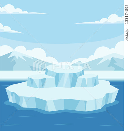 Iceberg Floating in Blue Arctic Ocean Concept Flat Illustration Clip Art Isolated on White