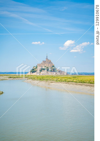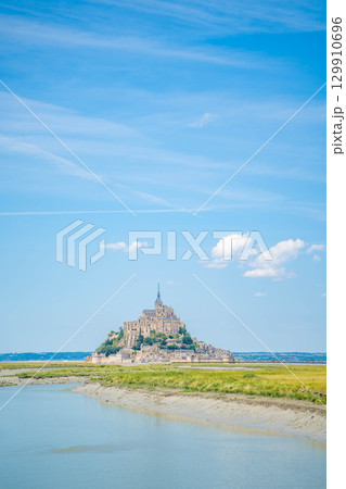 聖米歇爾山和濕地的綠意在藍天的襯托下閃閃發光