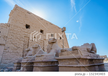 Avenue of Ram-Headed Sphinxes at Temple of Karnak Luxor.