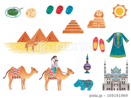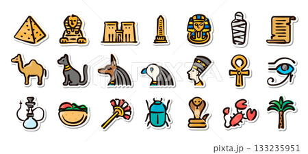 埃及手繪插畫貼紙套裝 - 旅遊向量素材
