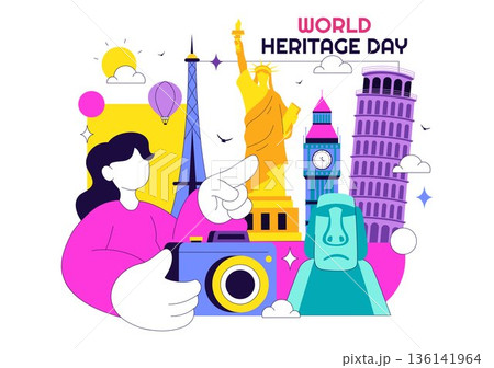 World Heritage Day Label with Flat Cartoon Hand Drawn Illustration Background