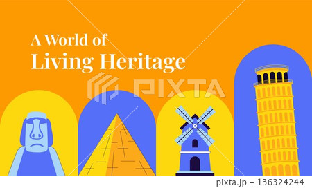 World Heritage Day Flat Cartoon Hand Drawn Social Media Post Illustration Background