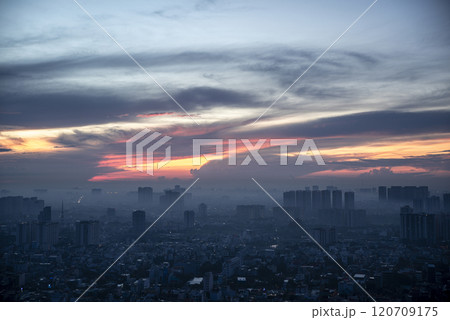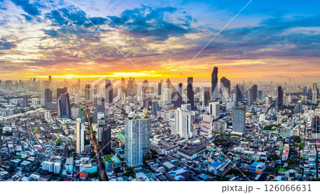 Aerial view Bankok city central business downtown and Capital city skyline. Cityscape for PM 2.5 in Thailand.