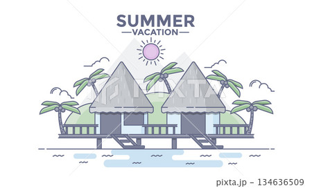 水上小屋、別墅插圖圖示(飯店、度假、度假村素材)