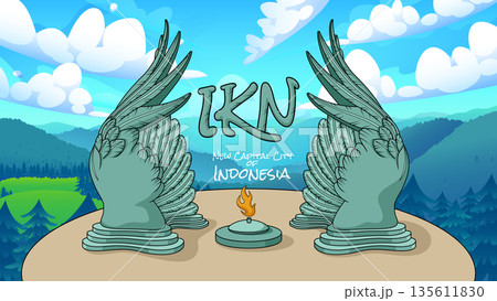 Statue of Kusuma Bangsa Cartoon, New Capital City Nusantara Indonesia, Vector Illustration