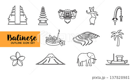 Balinese Outline Icon Set Cultural Symbols Collection.Vector Illustration