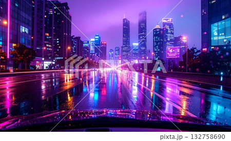 霓虹閃爍的賽博龐克城市