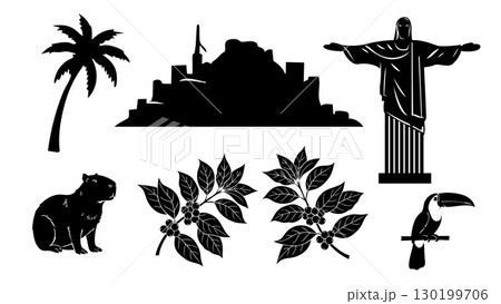 Brazil iconic silhouette elements collection. Vector set with symbols and landmarks.