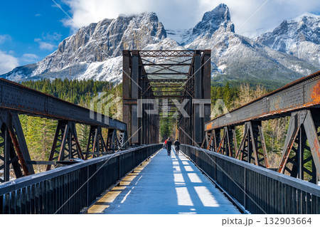 加拿大艾伯塔省坎莫爾引擎橋和倫德爾山初冬景色