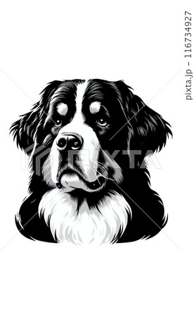 瑞士伯恩山犬的單色圖像。身材高大、力量強大,但個性卻溫柔。