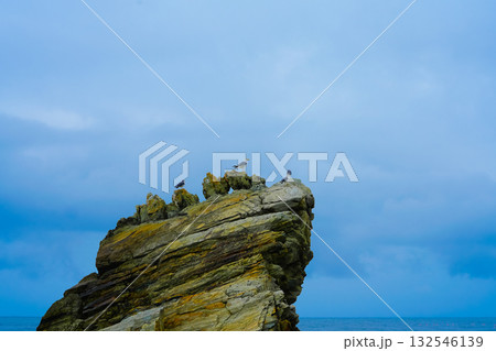 Seagulls sits on the rock, East sea. South Korea
