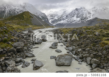 River through Hooker Valley in Mount Cook National Park, New Zealand