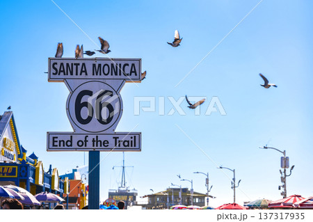 洛杉磯聖莫尼卡碼頭,66號公路終點標誌