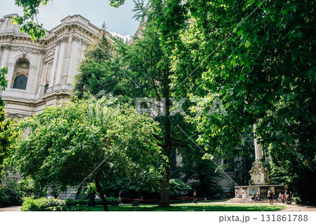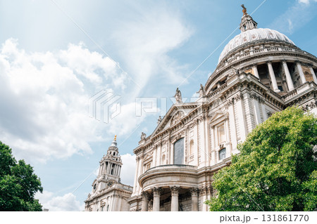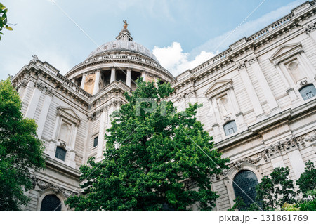 View of St Pauls Cathedral Exterior with Trees in London, UK