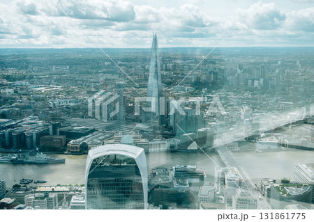 Panoramic view of London cityscape and Thames River in United Kingdom