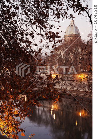 View over Tiber River towards Vatican at twilight