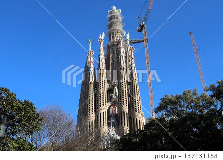 西班牙,巴塞隆納,聖家堂,聖誕立面,五月清晨