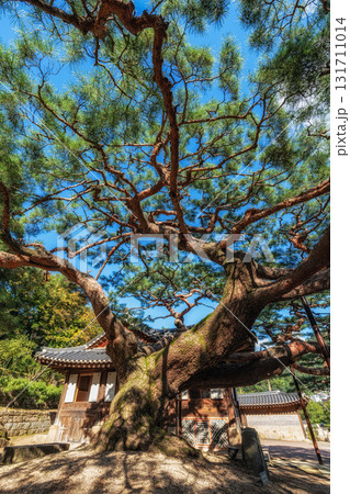 Majestic ancient tree at traditional korean palace gyeongbokgung