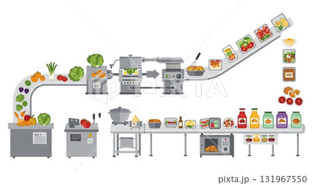 平面設計。食品工廠和製造過程的鳥瞰圖