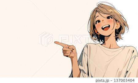 正面背景素材:一位女士面帶微笑,回頭望向前方,背景為黃色。