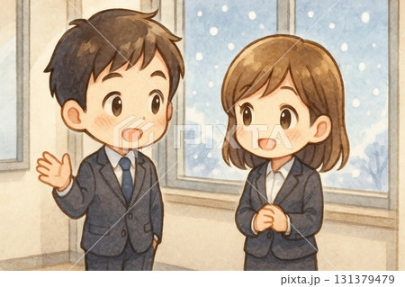 赤壁人物商人和辦公室女士在雪窗旁交談