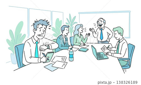 會議遲遲未結束,一位上班族焦慮地看著手錶。