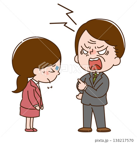 惱怒、憂心忡忡、表情困擾的中年男女商業插畫素材_Vector_Color