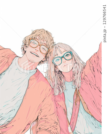 一對情侶約會自拍的插畫素材2