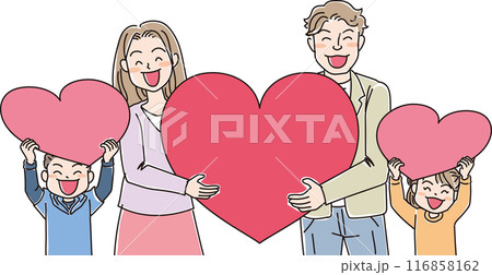 人物插畫_心心微笑的人們_四口之家_親子_男學生_女學生_40多歲夫婦