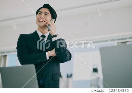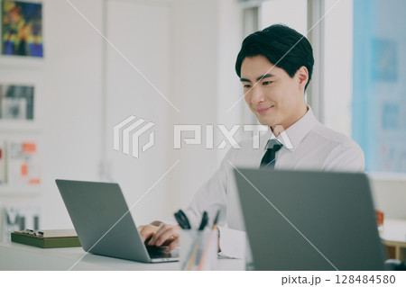一位穿著西裝在工作的男人