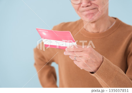 一位老人看著他的銀行存摺,憂心忡忡。