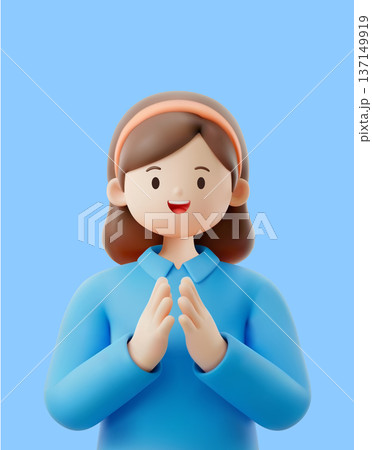 Little Girl Character Claps Her Hands Joyfully, Radiant Smile On Her Face, Expressing Her Excitement, Happiness