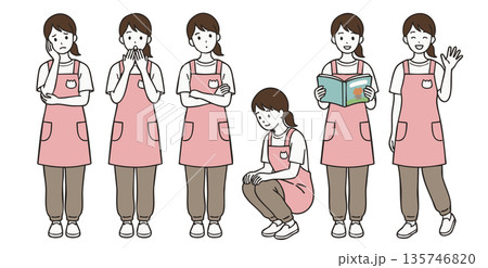 一套共 6 幅插圖,描繪了女幼教老師的擔憂、驚喜、朗讀等場景。