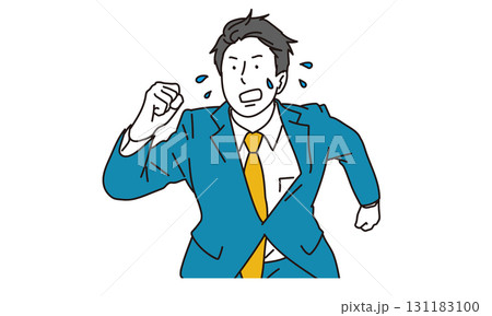 一名身穿西裝的男子因為快要遲到而奔跑的插圖、一名商人趕著去上班的手繪風格素材、一名通勤途中匆忙的人