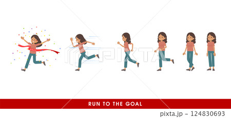一個女孩微笑著奔跑的變形插圖
