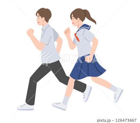 穿著制服跑步的學生男女制服側面學校全身夏裝