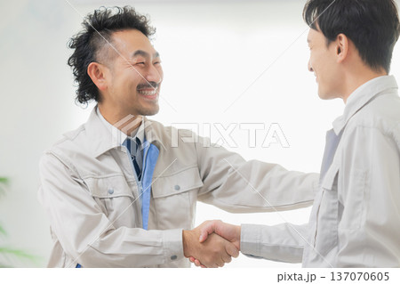 身穿工作服的男人們握手